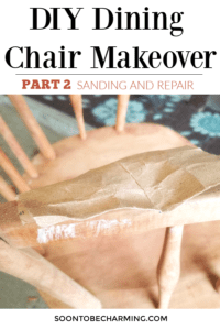 What a beautiful site! We finally stripped all 6 dining chairs and are ready for sanding and repair! If you missed the first post on removing paint, you can check it out HERE! This stage of sanding and repair was much cleaner than stripping paint. We were very successful at getting most of the paint off, which made our task of sanding much easier. If you leave a lot of paint on the chairs, it will gum up the sandpaper and may cause more issues. So before you move on to sanding, try to get your chairs or furniture as clean as possible!