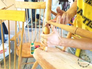 When you purchase used or antique chairs, you may have to do a few repairs. Overall, the chairs were sturdy and in good shape. Just a few chairs squeaked or rocked a little, so we wanted to fix the legs before moving on.