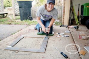 I started by sorting through our pile of pallet boards (check out Creating a Mudroom Part 2: Pallet Wall to see what we did to prepare the pallet wood). The goal was to find four boards to make the frame.
