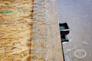 TIP: My husband helped me staple the chicken wire down to the plywood first, this keeps it from rolling up on you constantly.